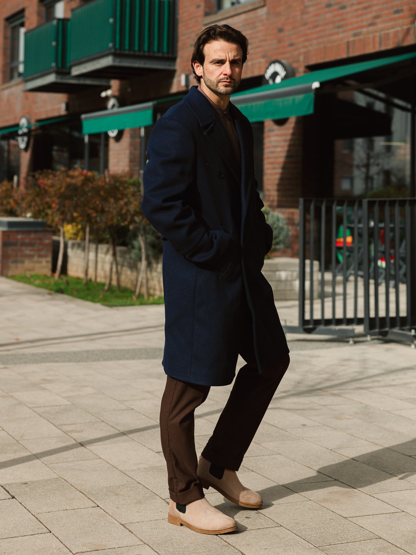 Бежово двуредно палто